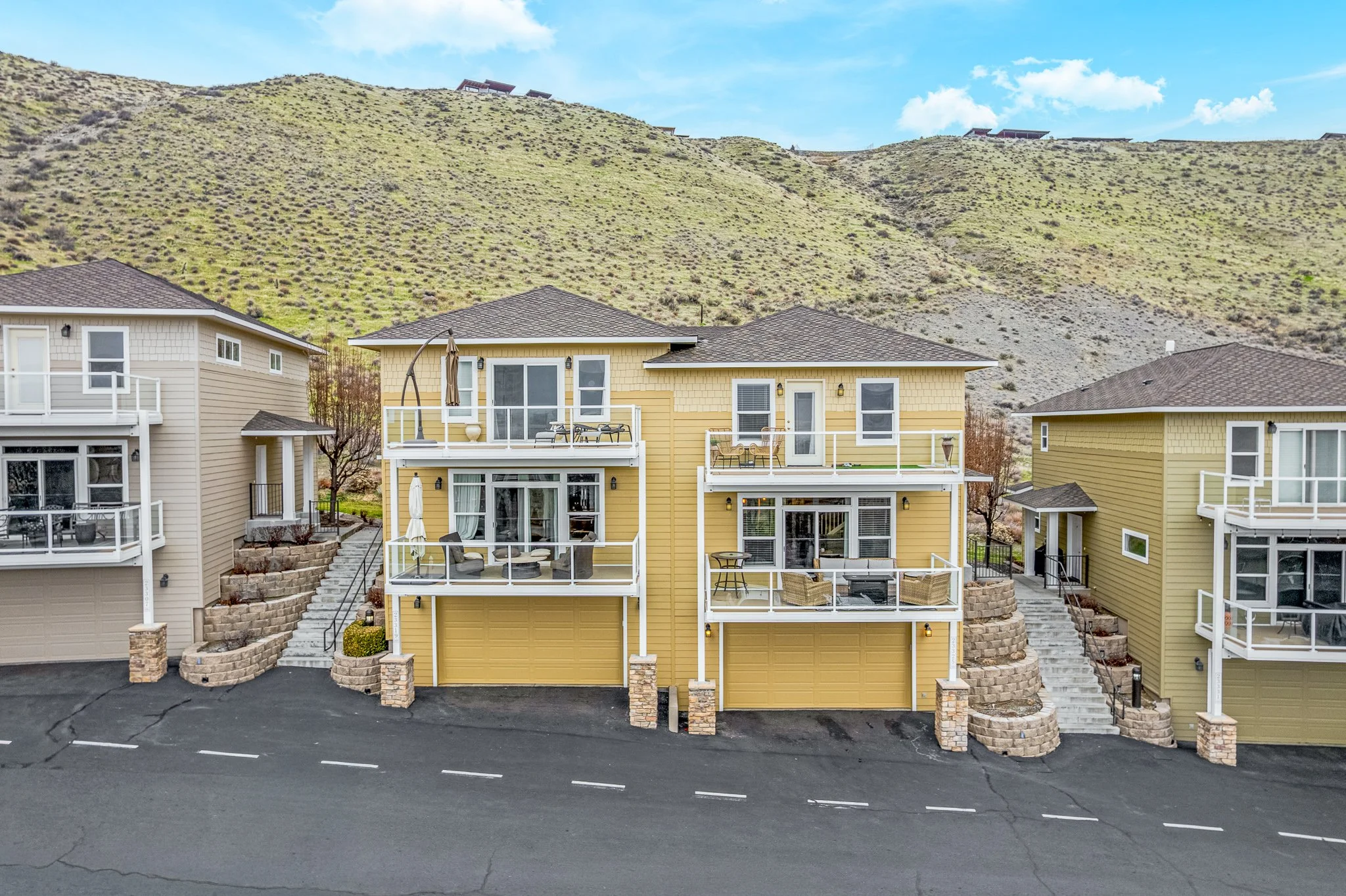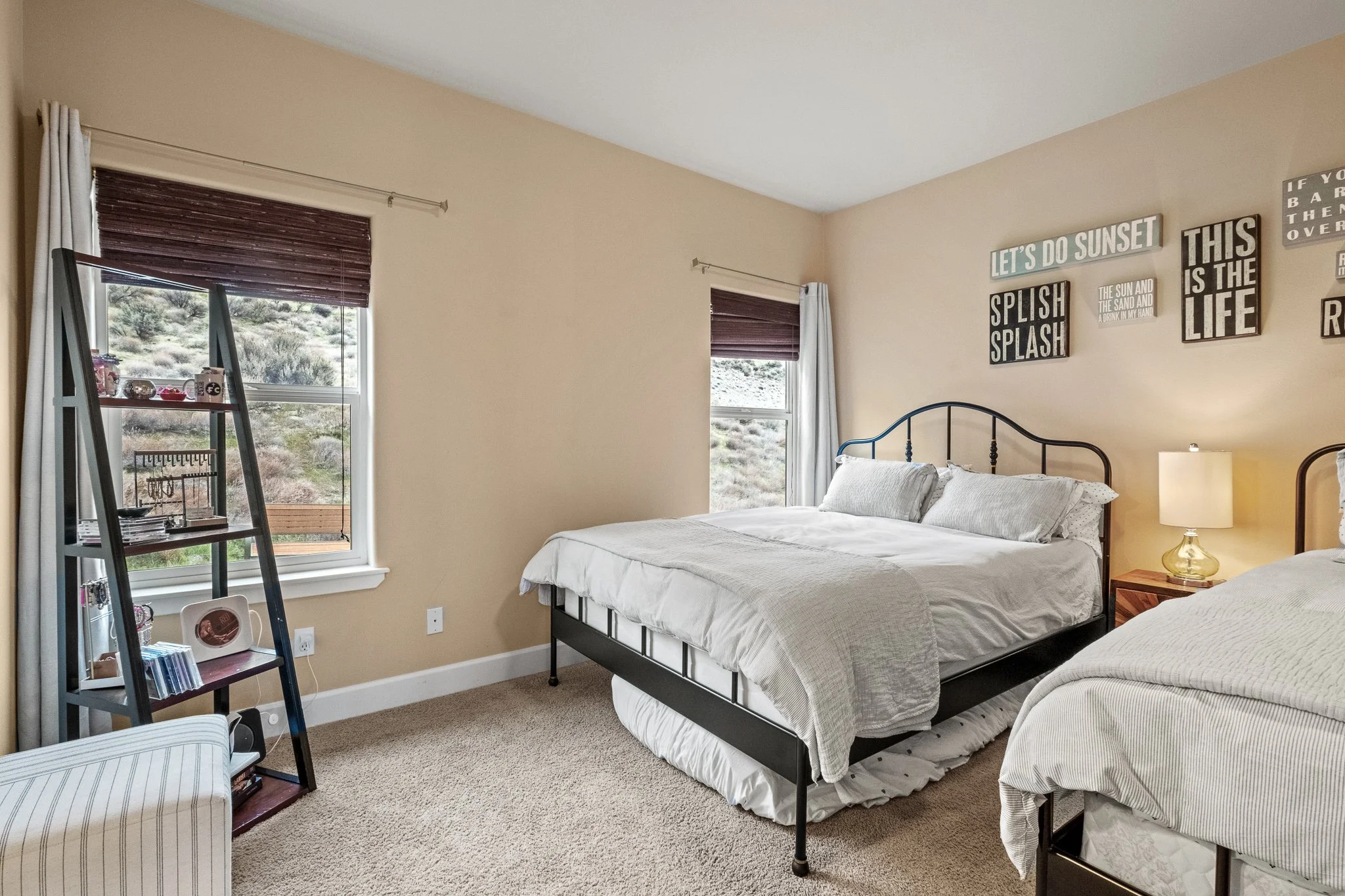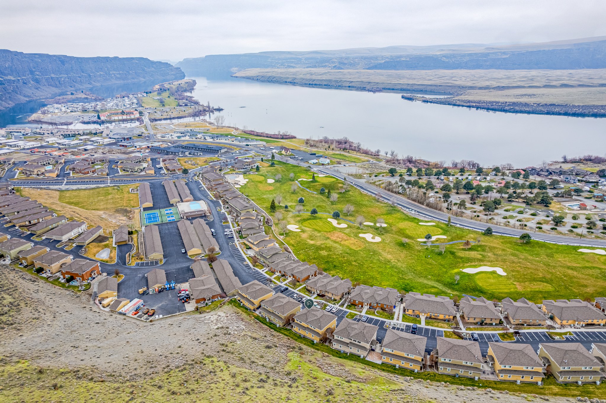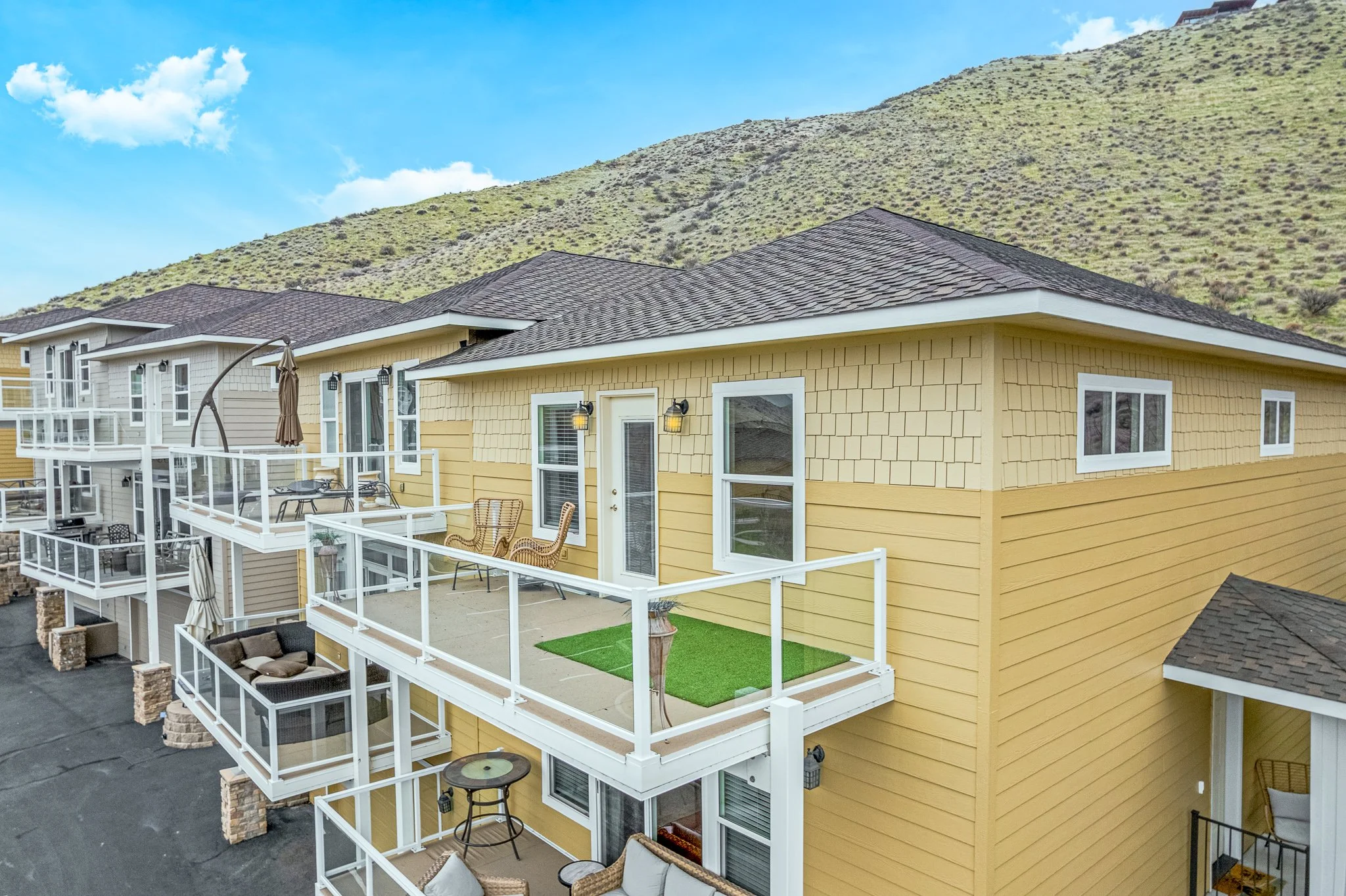 Nestled within a gated Resort golf community awaits this turn-key 2 Bed+ DEN, 2 Bath river, golf and canyon view oasis. Enjoy the wall of window views from the oversized Great room. Soaring 2 story ceiling allows an abundance of light throughout. Room for everyone, movie nights, arts & crafts & entertaining your guests. Engineered hardwoods in main living areas, dining room seats 12 & a well appointed kitchen. Cherry cabinets w/all new SS appliances, french door fridge, stove/oven, dishwasher & stacked washer/dryer. Black granite counters allow plenty of prep room for meals. Island sits 3-4 stools comfortably w/plenty of storage throughout. Full bath on main w/travertine floors & marble counters. 2nd bedroom on main floor has queen size bunk beds & faces the private back hill. The 2nd level greets a spacious primary en-suite w/sliders out to your amazing view deck. This is why you are here! The ever changing sky, sunrise and the bright red, orange and purple sunsets. The en-suite has dual sinks, marble counters & lots of storage, 'rain shower' glass doors to shower and a beautiful soaking tub & walk-in oversized closet. The Den on the 2nd story allows another sleeping option. A perfect lock & leave lifestyle awaits you! *4 CAR garage* **HOA includes golf memebership for 4 people of your choosing.** $17,500 in assumable Airbnb bookings offer incredible value. Furniture is included if buyer wants. New heat pump/central A/C & water softener.