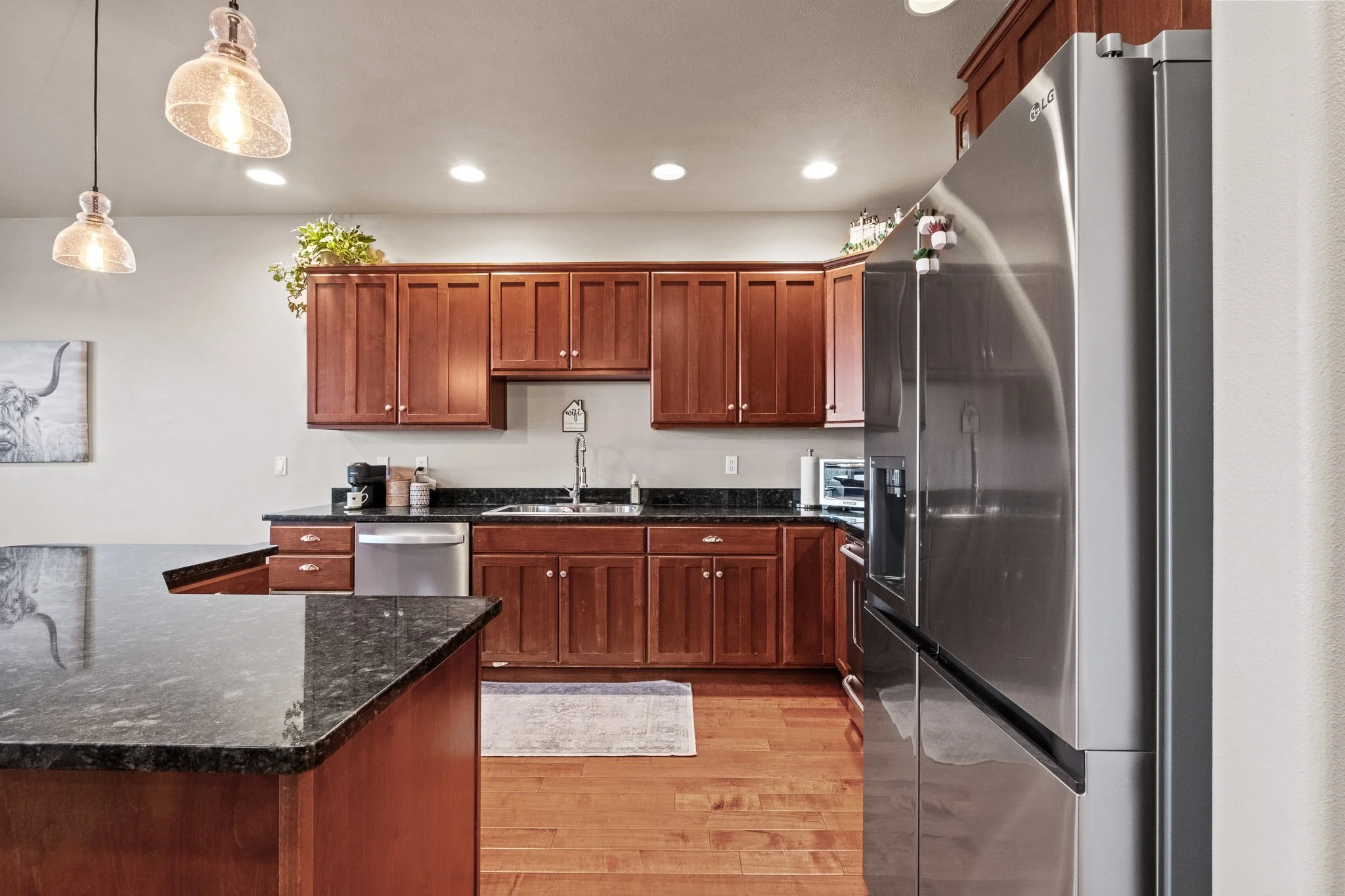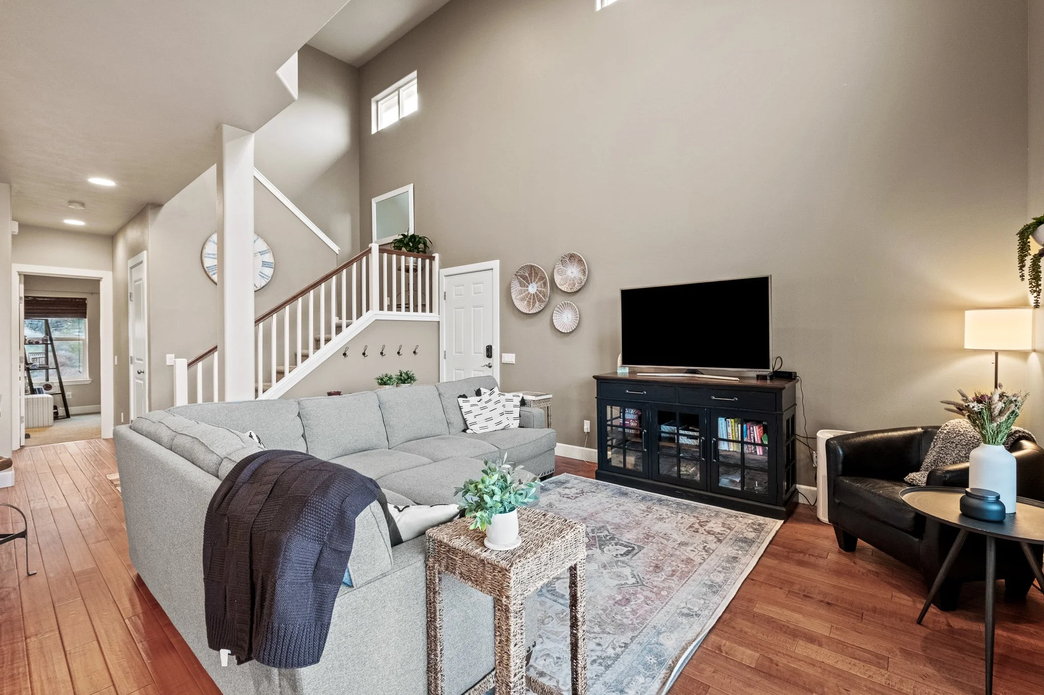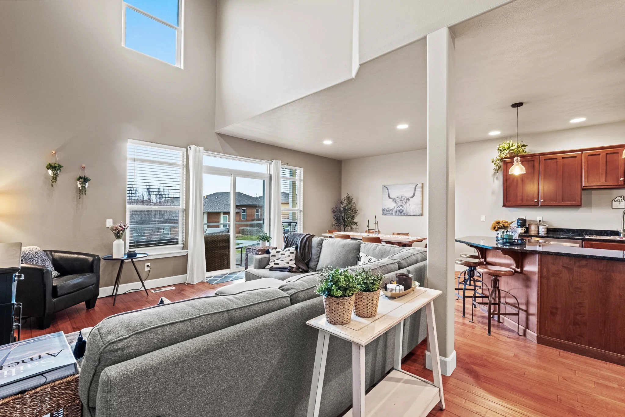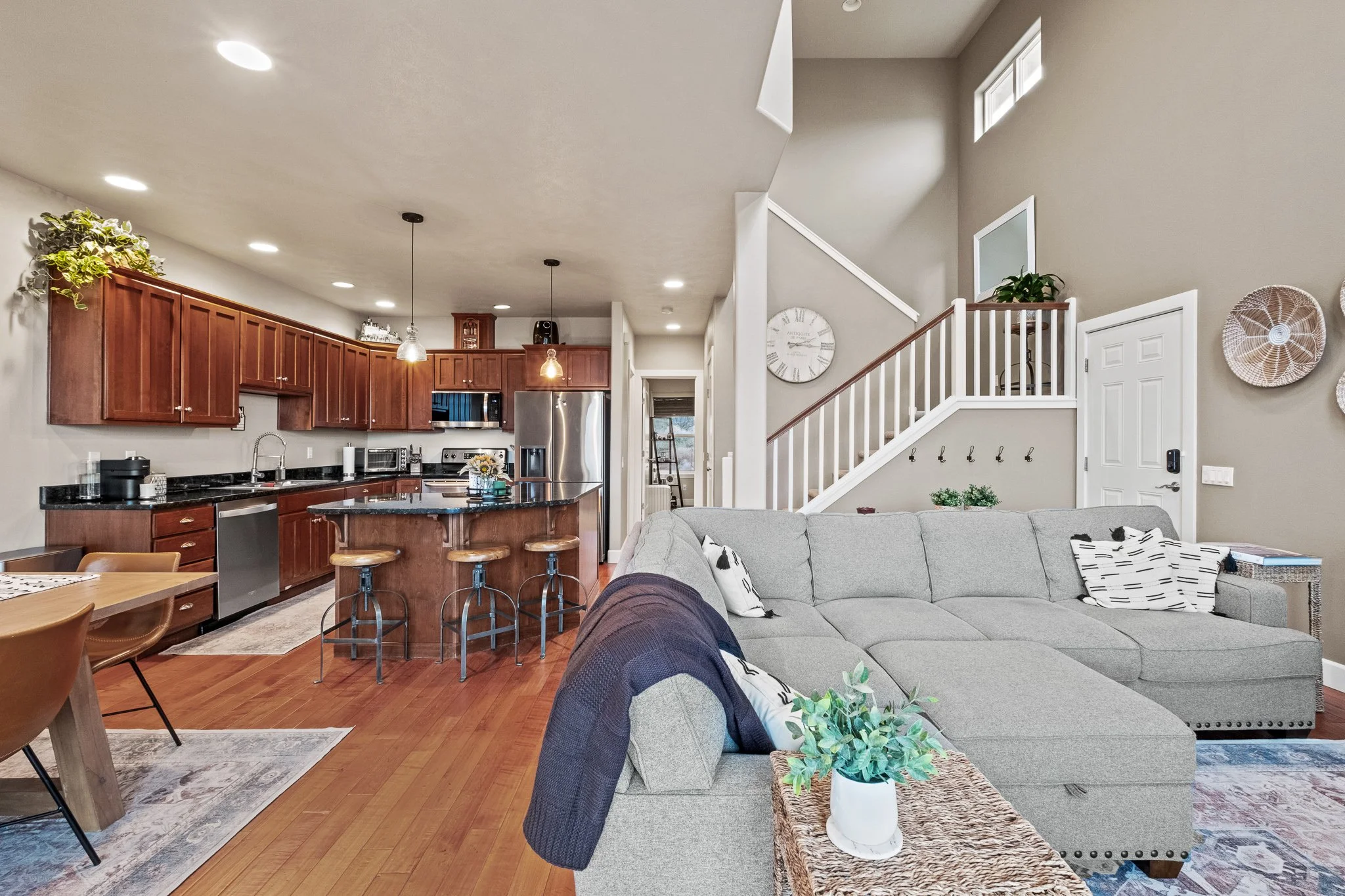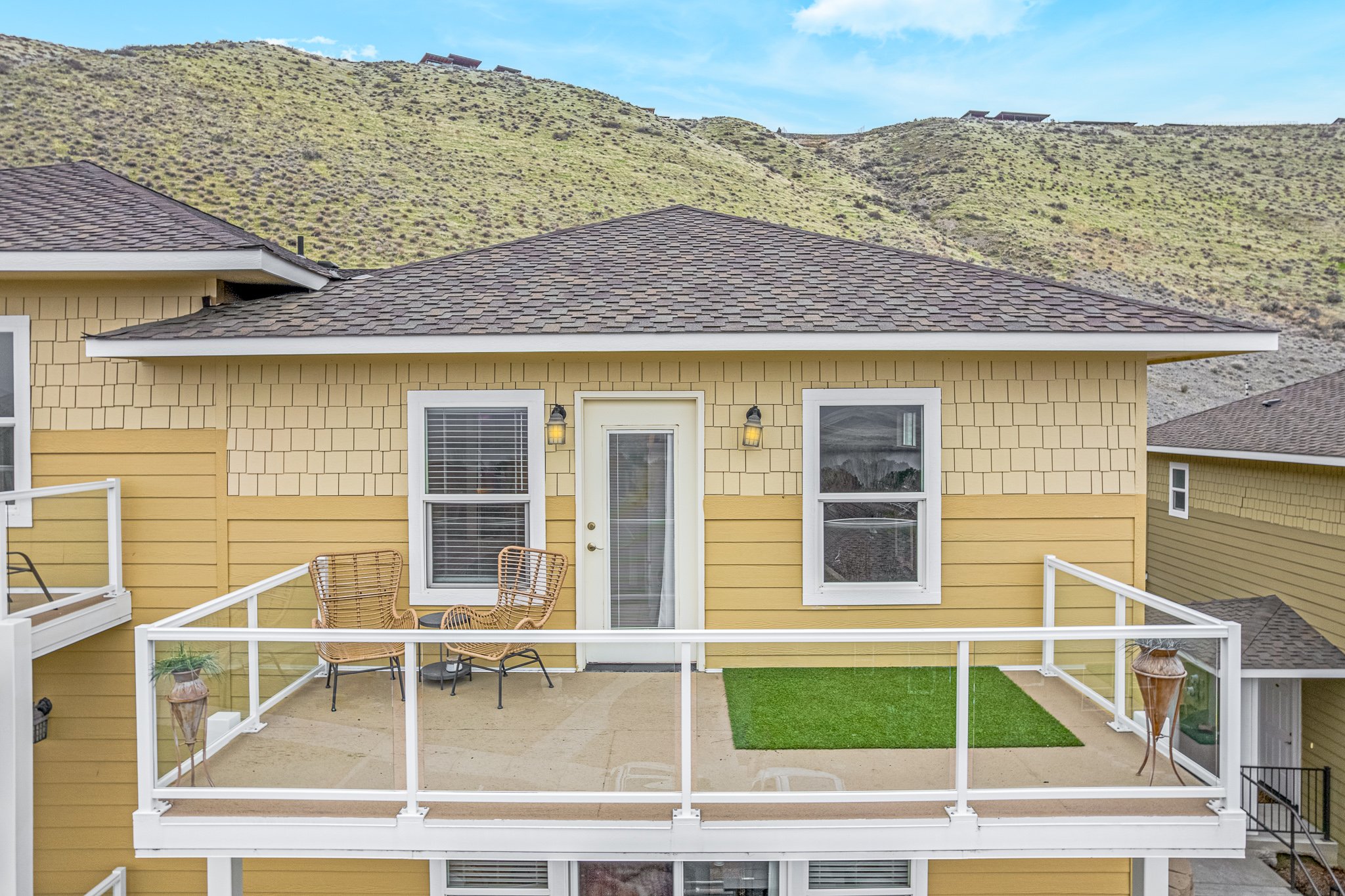Nestled within a gated Resort golf community awaits this turn-key 2 Bed+ DEN, 2 Bath river, golf and canyon view oasis. Enjoy the wall of window views from the oversized Great room. Soaring 2 story ceiling allows an abundance of light throughout. Room for everyone, movie nights, arts & crafts & entertaining your guests. Engineered hardwoods in main living areas, dining room seats 12 & a well appointed kitchen. Cherry cabinets w/all new SS appliances, french door fridge, stove/oven, dishwasher & stacked washer/dryer. Black granite counters allow plenty of prep room for meals. Island sits 3-4 stools comfortably w/plenty of storage throughout. Full bath on main w/travertine floors & marble counters. 2nd bedroom on main floor has queen size bunk beds & faces the private back hill. The 2nd level greets a spacious primary en-suite w/sliders out to your amazing view deck. This is why you are here! The ever changing sky, sunrise and the bright red, orange and purple sunsets. The en-suite has dual sinks, marble counters & lots of storage, 'rain shower' glass doors to shower and a beautiful soaking tub & walk-in oversized closet. The Den on the 2nd story allows another sleeping option. A perfect lock & leave lifestyle awaits you! *4 CAR garage* **HOA includes golf memebership for 4 people of your choosing.** $17,500 in assumable Airbnb bookings offer incredible value. Furniture is included if buyer wants. New heat pump/central A/C & water softener.