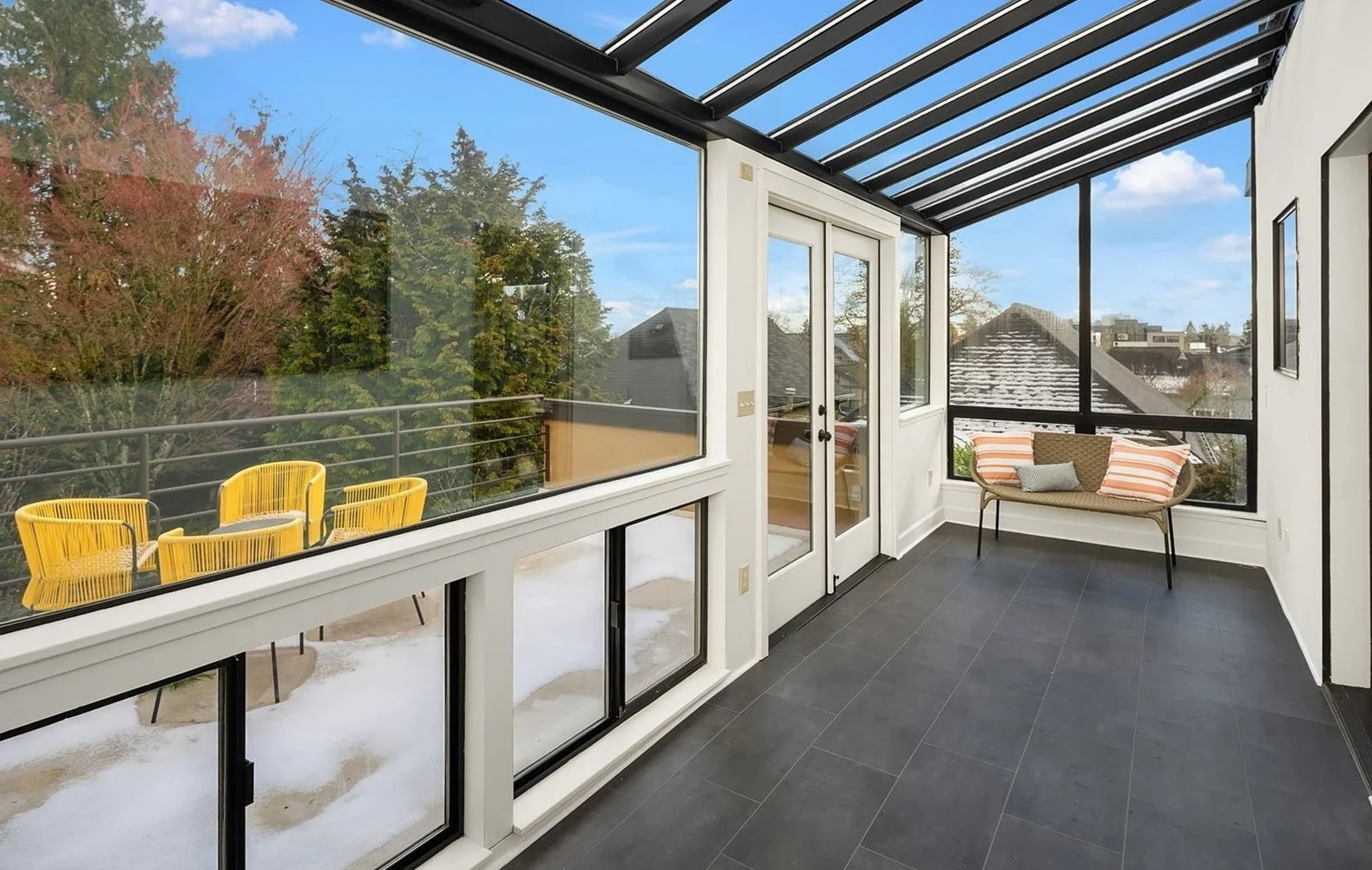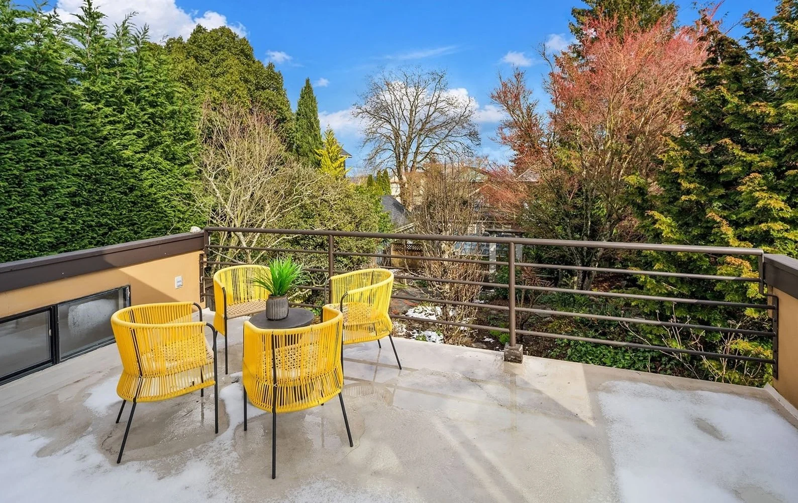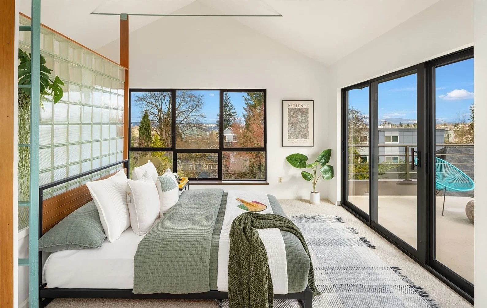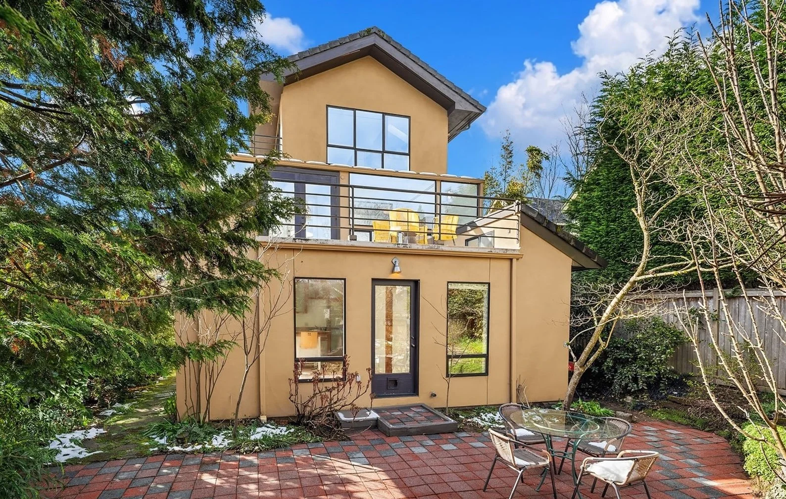 The top- floor primary suite with an en suite bath feels suspended above the city — wake up to sunrise and mountain views. Expansive patios and decks offer indoor-outdoor living: morning coffee at sunrise, al fresco dining, intimate evenings in a lush, fenced private garden — a rare urban retreat.