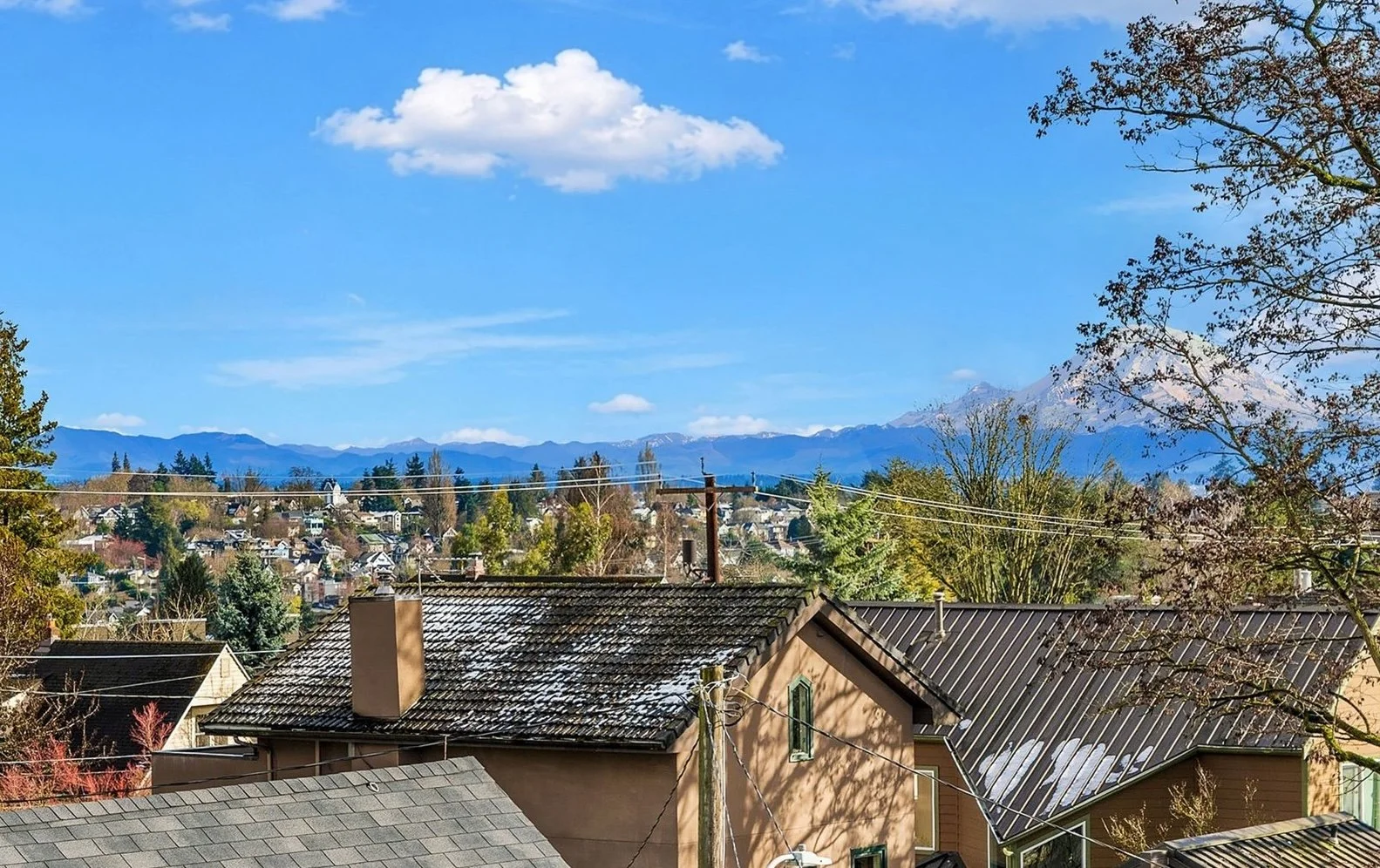 This one-of-a-kind 5BD/3.5BA contemporary home offers 2,320 sq ft of living space on a 4,920 sq ft lot, featuring a 1BR income-producing ADU, soaring 13-ft vaulted ceilings, huge flexible garage/finished basement, three patios, two decks, and breathtaking Cascade Mountain views. Floor-to-ceiling windows flood the great room with natural light even on cloudy days.